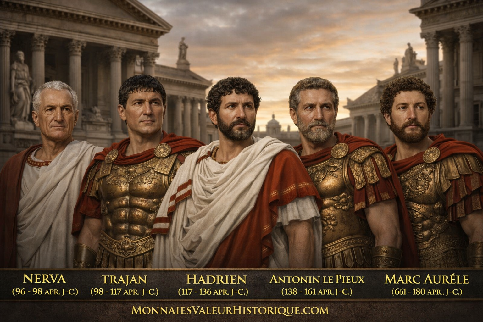 Les Cinq Bons Empereurs – L’âge d’or de la monnaie romaine (96–180 apr. J.-C.)