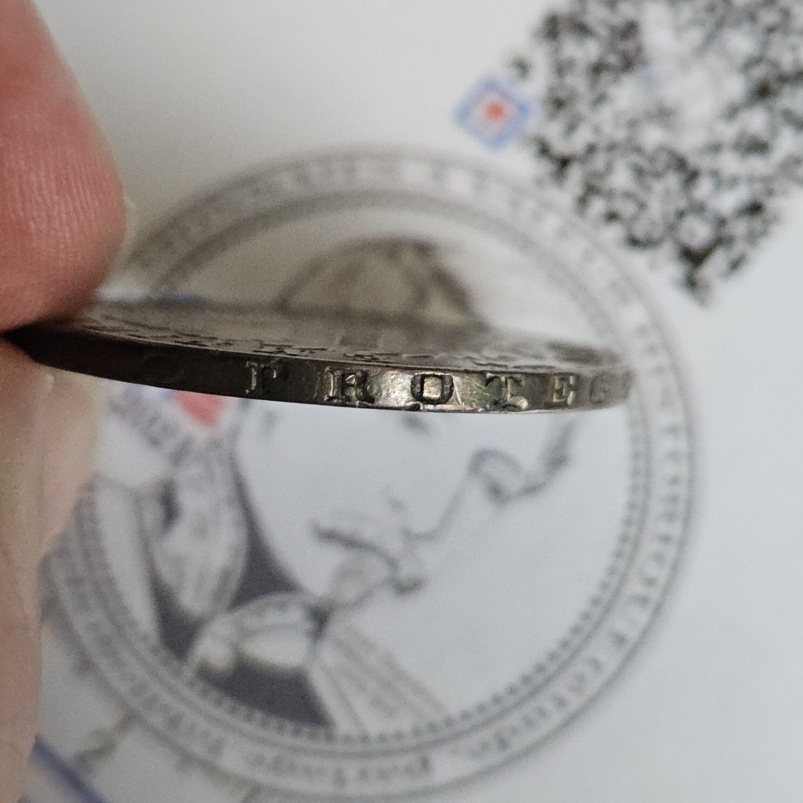La tranche en creux porte la devise « * DIEU PROTEGE LA FRANCE », formule emblématique des monnaies impériales, rappelant l’alliance entre pouvoir politique, foi et destinée nationale. Cette inscription, destinée à lutter contre le rognage, renforce également le caractère solennel de la pièce.