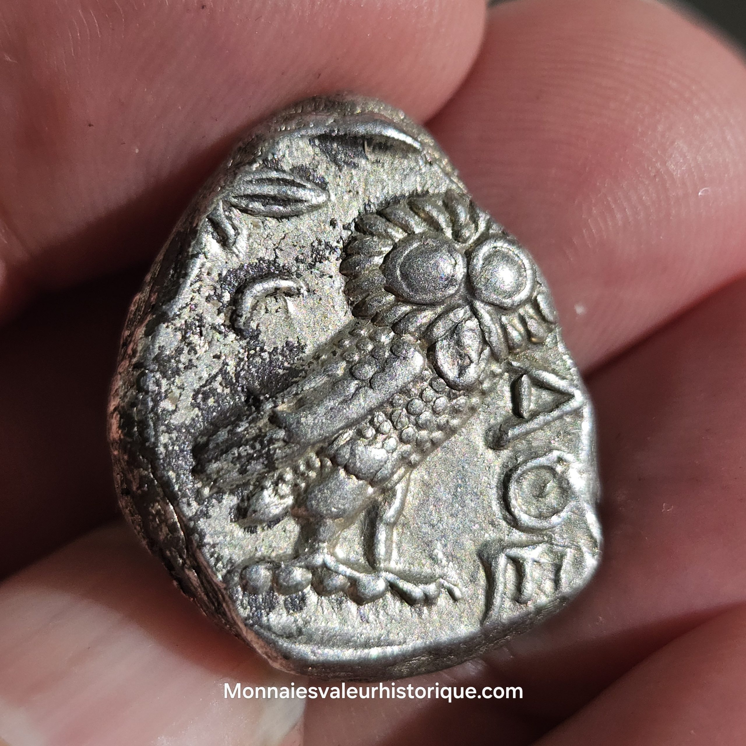 Superbe tétradrachme athénien, l’une des monnaies antiques les plus emblématiques.