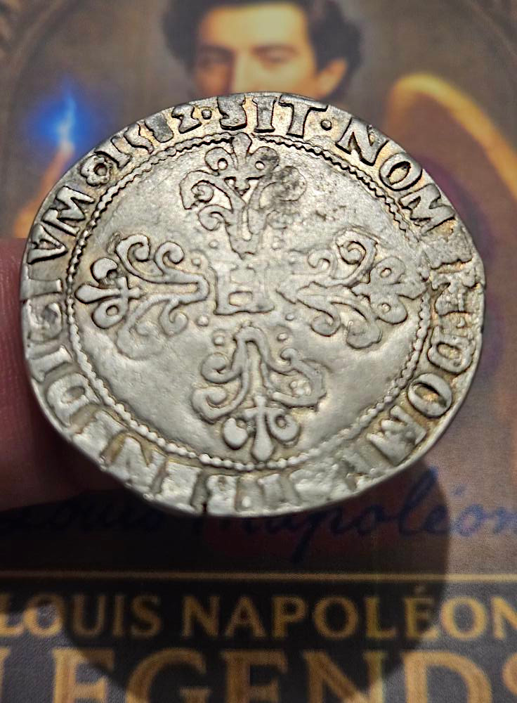 Ce franc au col plat en argent, frappé en 1582 à Saint-Lô, est une pièce emblématique du règne d’Henri III (1574–1589), dernier souverain de la dynastie des Valois. Héritier d’Henri II et de Catherine de Médicis, Henri III traversa une période troublée de l’histoire de France, marquée par les guerres de Religion, mais également par un raffinement artistique qui transparaît jusque dans sa numismatique.