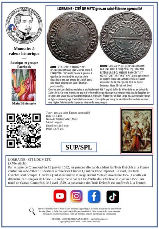 GROS DE LORRAINE – CITÉ DE METZ gros au saint-Étienne agenouillé