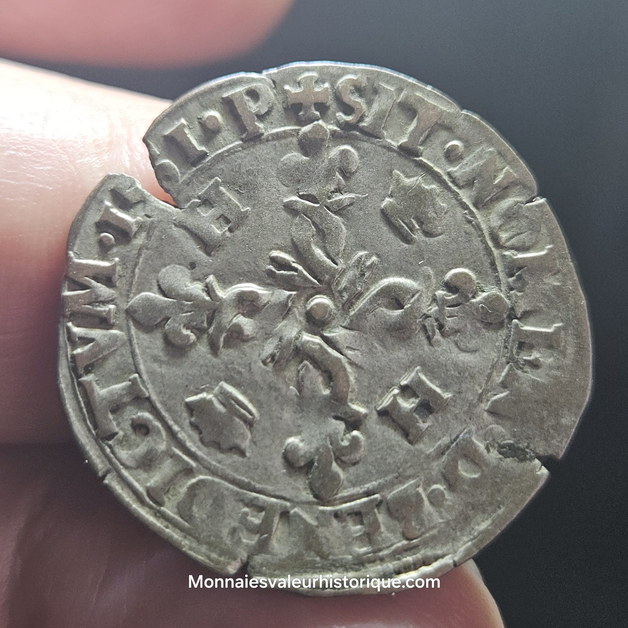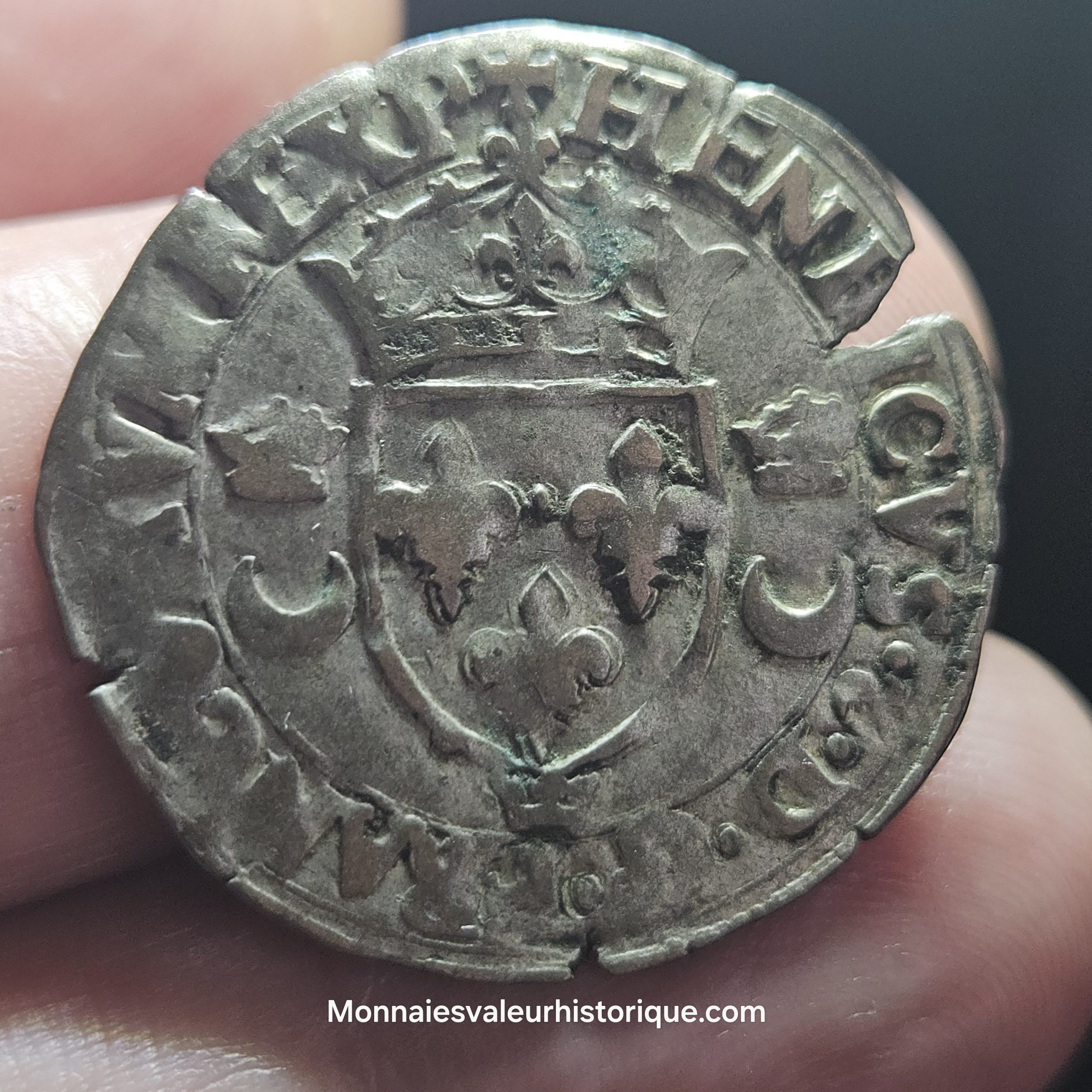 Avers: + HENRICVS. 2. D. G. FANCORVM. REX. (différent). Écu de France couronné, accosté de deux croissants couronnés, au-dessous (atelier).