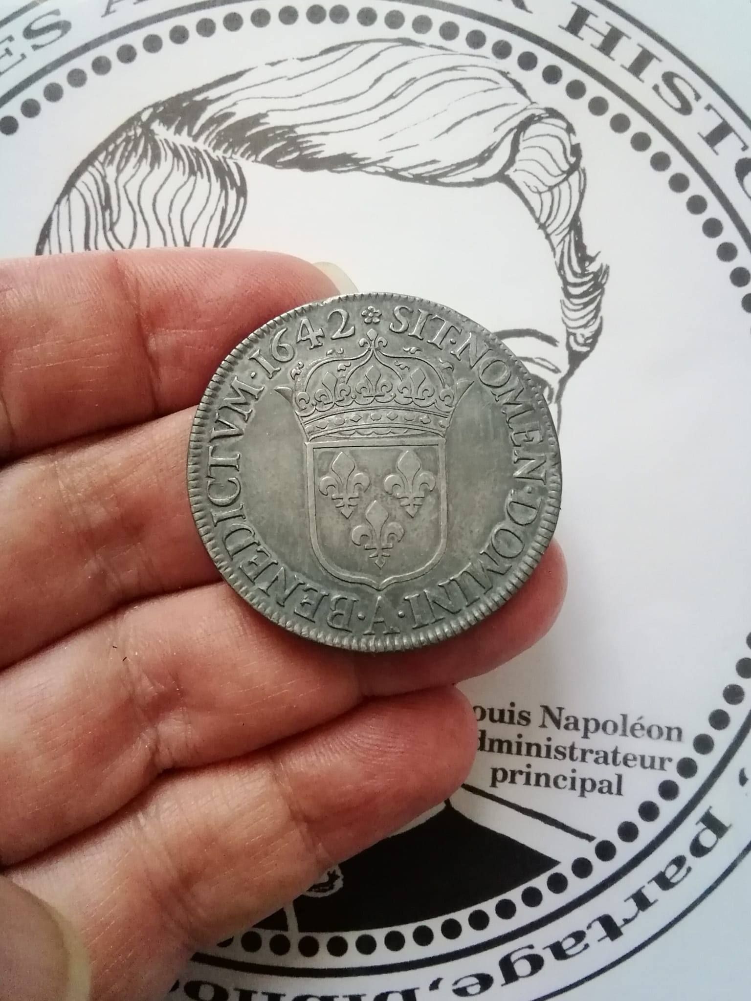 Très rare et recherché Louis XIII LE JUSTE Full Écu de 60 Sols, buste drapé (1er buste de Jean warin) 1642 Paris, Monnaie de Matignon